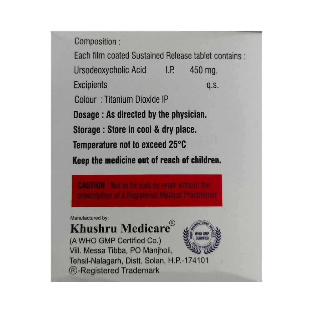 In Treatment of Gallbladder stonesUdtox SR 450 Tablet is a medicine that helps decreases the amount of cholesterol produced by your liver. It helps to break down cholesterol that has formed into “stones†in the gallbladder. It may take several months to completely dissolve the stone, so you need to take the medicine regularly and as long as the doctor has prescribed it for it to be effective. There might be other medicines and certain lifestyle changes that can reduce your cholesterol level and make gallstones less likely, consult with your doctor.In Treatment of Primary biliary cirrhosisPrimary biliary cholangitis is a type of liver disease that gradually gets worse over time. It does not always have symptoms but, over time, it can lead to liver failure. Udtox SR 450 Tablet is used to treat this condition and may be used by itself or with other medicines. It can help prevent or delay liver damage in most people, especially if you start taking it in the early stages. Once you start this treatment, you will likely be taking it for the rest of your life. To make the medicine more effective and for general health benefits, you can help yourself by stopping smoking, keeping a healthy weight, and not drinking too much alcohol.show moreshow less