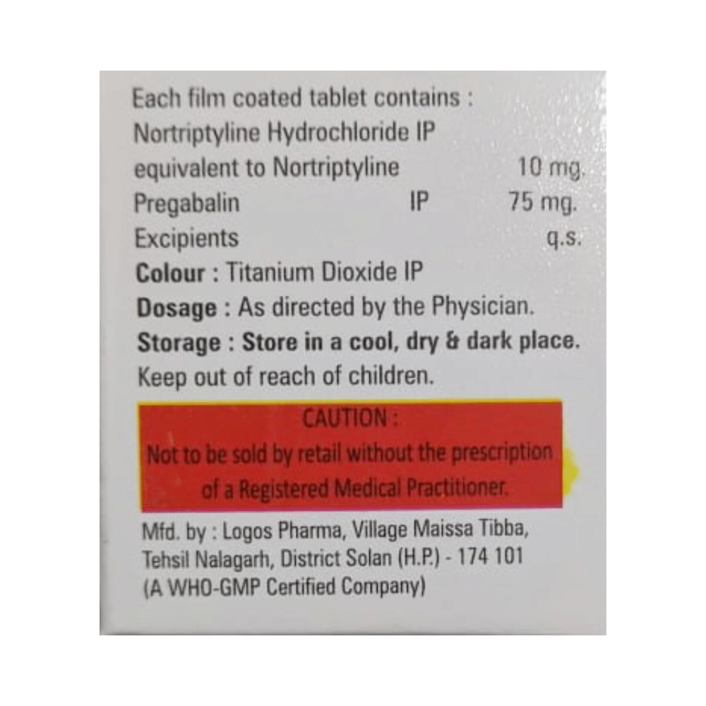 Salt Composition: Pregabalin (75mg) + Nortriptyline (10mg)