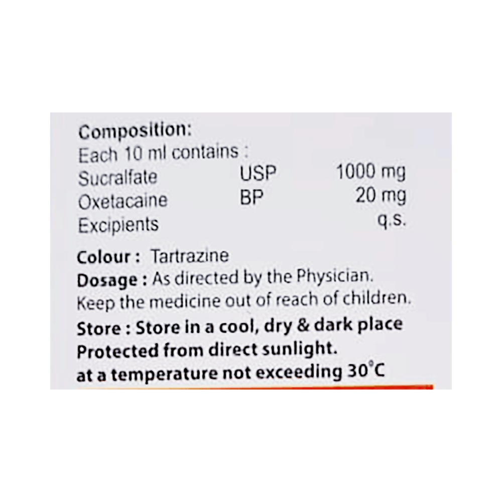 Salt Composition: Sucralfate (1000mg/10ml) + Oxetacaine (20mg/10ml)