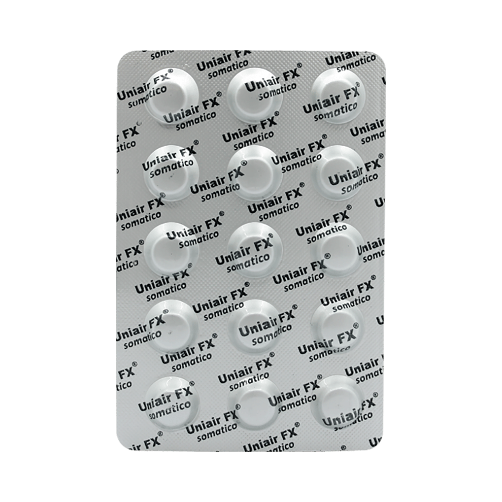 In Treatment of Sneezing and runny nose due to allergiesUniair FX Tablet is a combination medicine that provides relief from symptoms such as blocked or runny nose, sneezing and itchy or watery eyes. This will make it easier for you to go about your daily activities. It rarely has any serious side effects and you may only need to take it on days you have symptoms. If you are taking it to prevent getting symptoms you should use it regularly to get the most benefit.