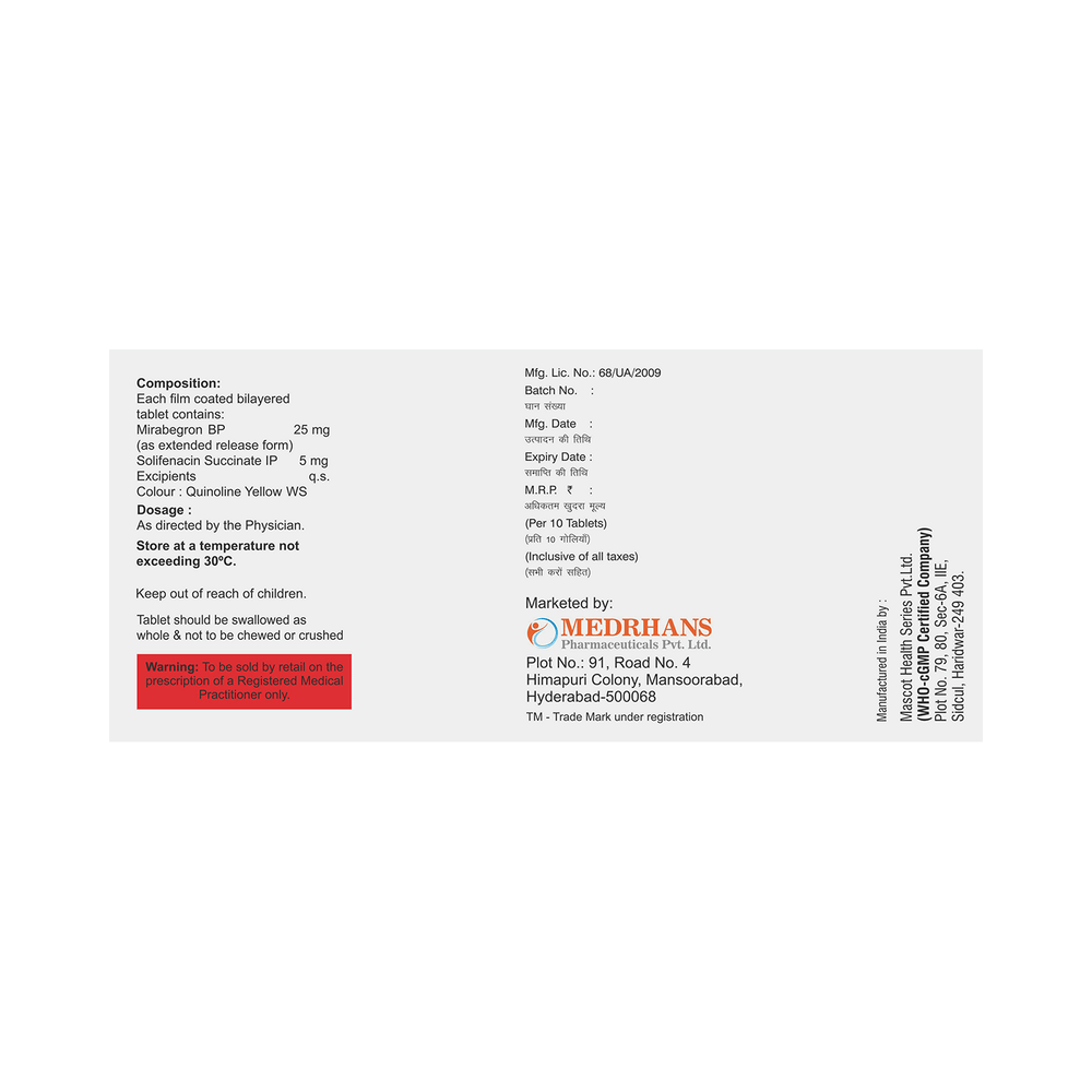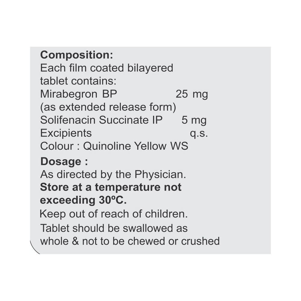 Salt Composition: Mirabegron (25mg) + Solifenacin (5mg)
