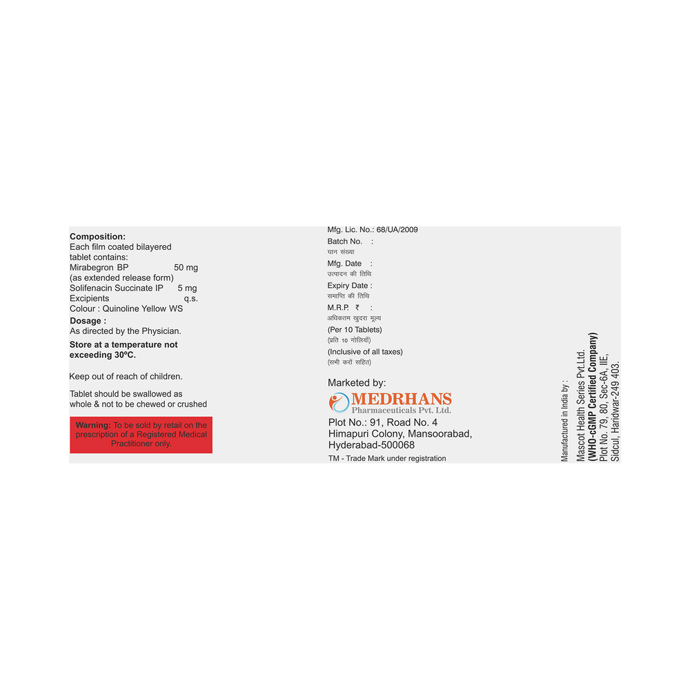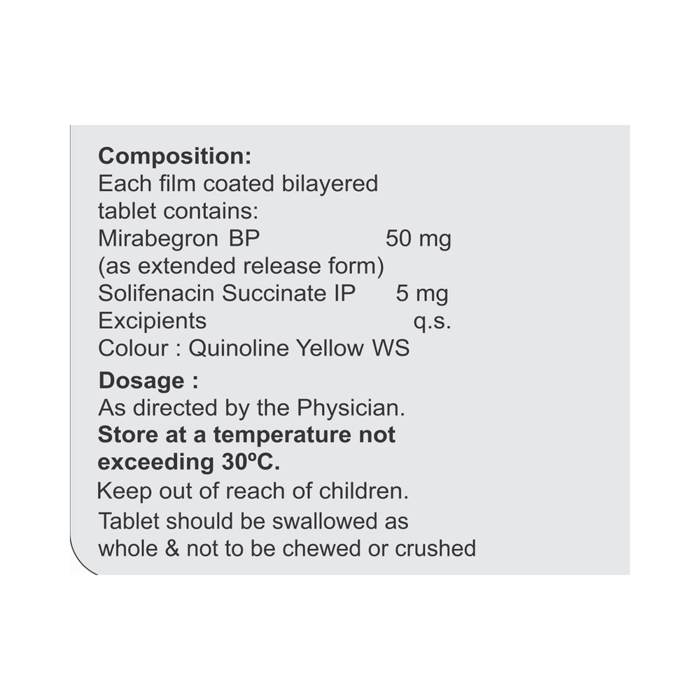 Salt Composition: Mirabegron (50mg) + Solifenacin (5mg)