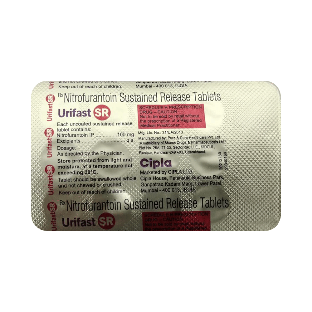 Urifast SR Tablet is an antibiotic that fights bacteria. It is used to treat and prevent bacterial infections of the urinary tract. It works by killing the bacteria that cause such disease. But, it will not treat a viral infection. Urifast SR Tablet should be taken in the dose and duration as advised by the doctor. You may take it with food to avoid nausea, which is a common side effect. It is better to have this medicine at the same time each day to get the most benefit and you should keep on taking this medicine for as long as you are prescribed it, even if your symptoms quickly improve. If you stop taking it too early the infection may return or worsen.Some people may develop side effects like nausea, vomiting, and diarrhea. These side effects are usually temporary and go away during treatment as your body adjusts to the medicine. Consult your doctor if these side effects bother you or do not go away. This medicine may turn your urine into dark yellow or brown color. But, this is normal and nothing to worry about.Before starting treatment with this medicine, you should tell your doctor if you are pregnant, breastfeeding or suffering from any liver, kidney or heart problems or if you are allergic to any antibiotic.