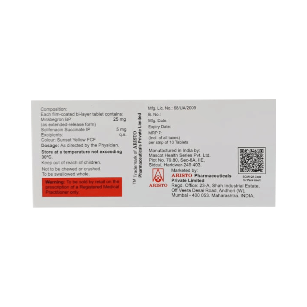 Salt Composition: Mirabegron (25mg) + Solifenacin (5mg)