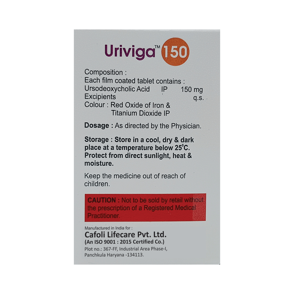 In Treatment of Gallbladder stonesUriviga 150 Tablet is a medicine that helps decreases the amount of cholesterol produced by your liver. It helps to break down cholesterol that has formed into “stones†in the gallbladder. It may take several months to completely dissolve the stone, so you need to take the medicine regularly and as long as the doctor has prescribed it for it to be effective. There might be other medicines and certain lifestyle changes that can reduce your cholesterol level and make gallstones less likely, consult with your doctor.In Treatment of Primary biliary cirrhosisPrimary biliary cholangitis is a type of liver disease that gradually gets worse over time. It does not always have symptoms but, over time, it can lead to liver failure. Uriviga 150 Tablet is used to treat this condition and may be used by itself or with other medicines. It can help prevent or delay liver damage in most people, especially if you start taking it in the early stages. Once you start this treatment, you will likely be taking it for the rest of your life. To make the medicine more effective and for general health benefits, you can help yourself by stopping smoking, keeping a healthy weight, and not drinking too much alcohol.show moreshow less