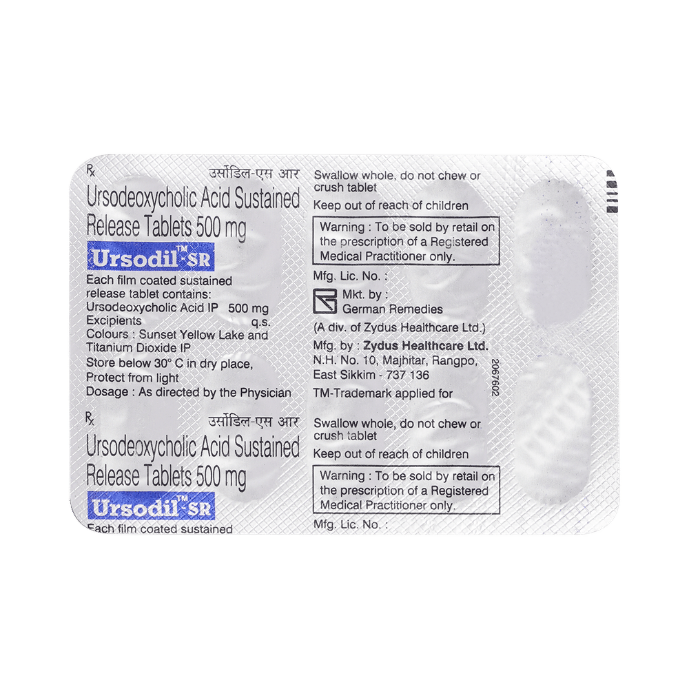 In Treatment of Gallbladder stonesUrsodil -SR Tablet is a medicine that helps decreases the amount of cholesterol produced by your liver. It helps to break down cholesterol that has formed into “stones†in the gallbladder. It may take several months to completely dissolve the stone, so you need to take the medicine regularly and as long as the doctor has prescribed it for it to be effective. There might be other medicines and certain lifestyle changes that can reduce your cholesterol level and make gallstones less likely, consult with your doctor.In Treatment of Primary biliary cirrhosisPrimary biliary cholangitis is a type of liver disease that gradually gets worse over time. It does not always have symptoms but, over time, it can lead to liver failure. Ursodil -SR Tablet is used to treat this condition and may be used by itself or with other medicines. It can help prevent or delay liver damage in most people, especially if you start taking it in the early stages. Once you start this treatment, you will likely be taking it for the rest of your life. To make the medicine more effective and for general health benefits, you can help yourself by stopping smoking, keeping a healthy weight, and not drinking too much alcohol.show moreshow less