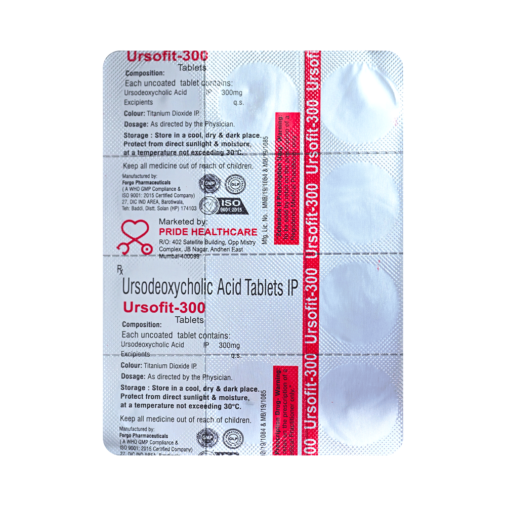 In Treatment of Gallbladder stonesUrsofit 300 Tablet is a medicine that helps decreases the amount of cholesterol produced by your liver. It helps to break down cholesterol that has formed into “stones†in the gallbladder. It may take several months to completely dissolve the stone, so you need to take the medicine regularly and as long as the doctor has prescribed it for it to be effective. There might be other medicines and certain lifestyle changes that can reduce your cholesterol level and make gallstones less likely, consult with your doctor.In Treatment of Primary biliary cirrhosisPrimary biliary cholangitis is a type of liver disease that gradually gets worse over time. It does not always have symptoms but, over time, it can lead to liver failure. Ursofit 300 Tablet is used to treat this condition and may be used by itself or with other medicines. It can help prevent or delay liver damage in most people, especially if you start taking it in the early stages. Once you start this treatment, you will likely be taking it for the rest of your life. To make the medicine more effective and for general health benefits, you can help yourself by stopping smoking, keeping a healthy weight, and not drinking too much alcohol.show moreshow less