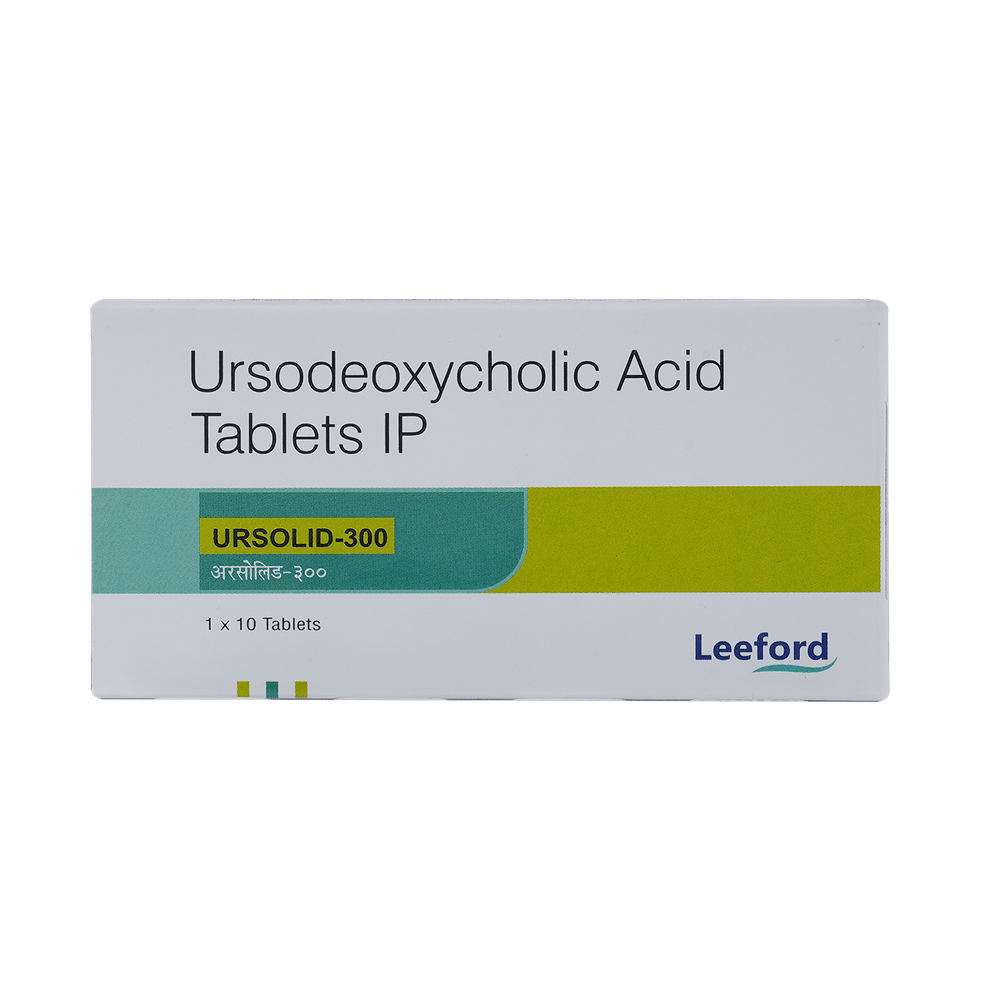 Ursolid 300mg Tablet is a medicine used to dissolve certain gallstones and prevent them from forming. It helps break down the cholesterol that has converted into stones in your gallbladder, thereby dissolving the stones. It is also used to treat a type of liver disease called primary biliary cirrhosis. Ursolid 300mg Tablet should be swallowed whole after a meal and with a glass of milk or water. The dose will depend on what you are being treated for and your health condition. Take it regularly to get maximum benefit, and keep taking it for as long as prescribed (several months or longer). Keep taking it even if your symptoms disappear.The most common side effects of Ursolid 300mg Tablet are abdominal pain, diarrhea, hair loss, itching, nausea, and rash. Not everyone gets these side effects. If you are worried about them or they do not go away, let your doctor know. They may be able to suggest ways to manage them or prescribe an alternative medicine.Before taking this medicine, you should tell your doctor if you have an inflammation of the gallbladder or bile ducts, frequent cramp-like pain in your upper abdomen, coughing up blood, or gaining weight rapidly. Using this medicine can reduce or increase the effect of some other medicines, so tell your doctor about all the other medicines you are taking. Pregnant and breastfeeding women should consult their doctor before using this medicine to make sure it is safe for them.