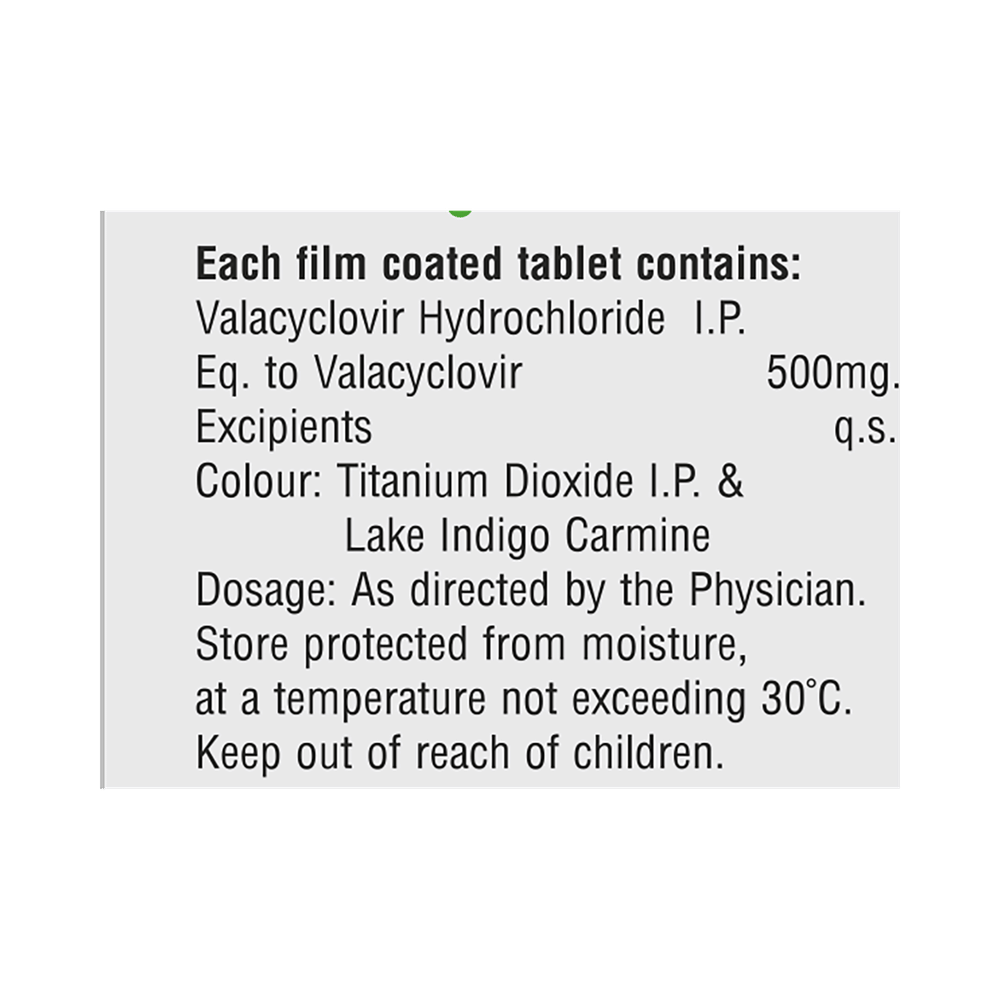 Valazee 500 Tablet is an antiviral medicine used in the treatment of herpes labialis, genital herpes infection, and herpes zoster infections. It prevents the multiplication of viruses in human cells and clears up the infection. Valazee 500 Tablet should be taken in the dose and duration as advised by your doctor. Do not skip any doses and finish the full course of treatment even if you feel better. It may be taken with or without food, but it is better to take it at a fixed time. If you miss a dose, take it as soon as possible. However, if it is almost time for your next dose, skip the missed dose and go back to your regular schedule. Do not double the dose. You should drink plenty of water while on treatment with this medicine as it helps to prevent dehydration and kidney damage. It may lead to a few common side effects like headache, vomiting, dizziness, diarrhea, itching (pruritus), and abdominal pain. Inform your doctor if these side effects persist for a longer duration. Please consult your doctor if you are pregnant, planning to conceive or breastfeeding.