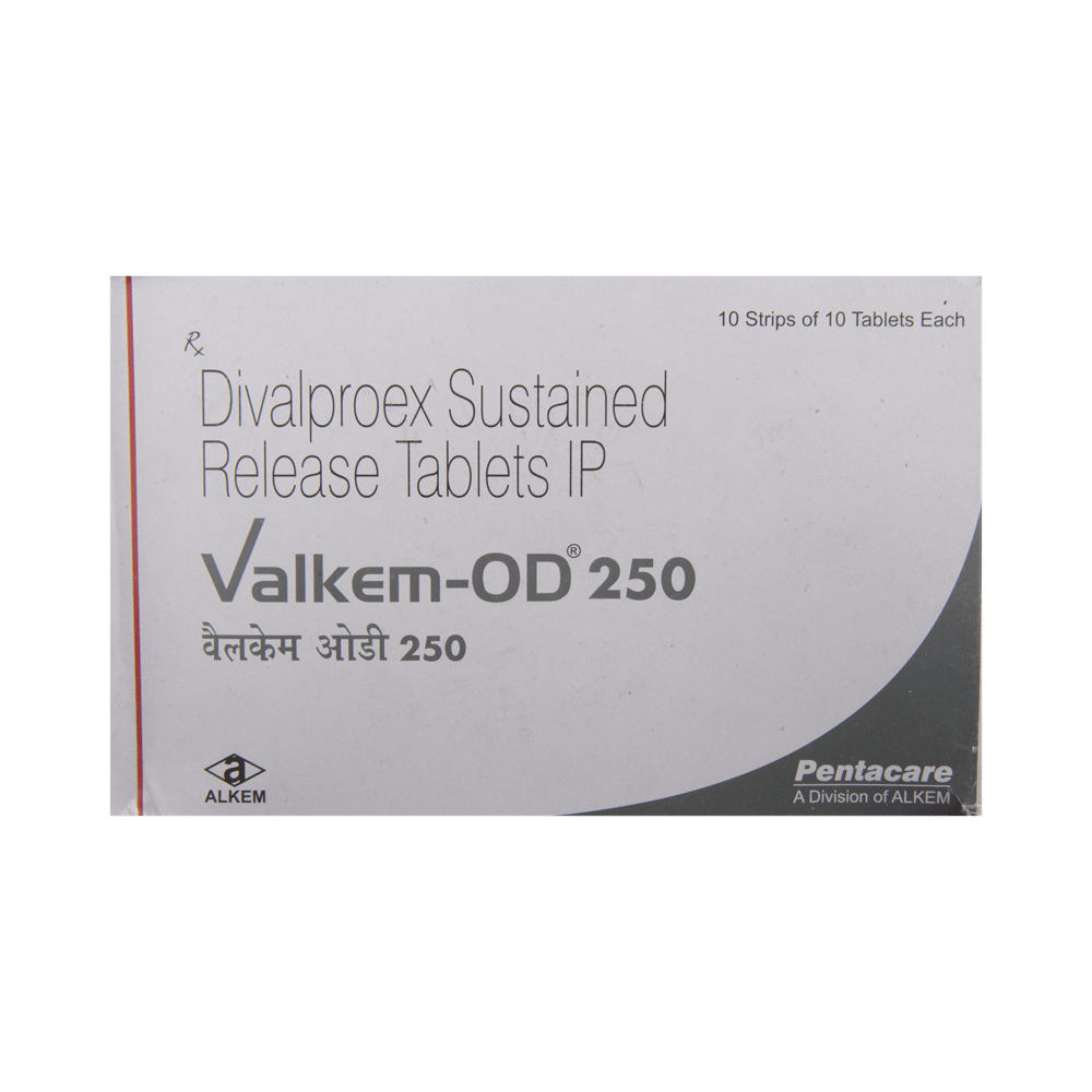 Valkem-OD 250 Tablet SR is a medication used to treat epilepsy, seizures, bipolar disorder, mania, trigeminal neuralgia, and migraines. It works by stabilizing brain activity. Always use it under medical supervision for safe and effective treatment. Valkem-OD 250 Tablet SR may be used alone or in combination with other medicines. Your doctor will determine the appropriate dose and frequency to effectively control your symptoms. You can take this medicine with or without food, but for the best results, take it at the same time each day. It usually takes a couple of weeks to work. It is important to take this medicine regularly and for as long as you are advised, even if you feel well. Missing doses may trigger seizures, and if you stop, your condition may get worse. It should never be stopped suddenly.The most common side effects of Valkem-OD 250 Tablet SR include headache, constipation, nausea, vomiting, dizziness, weight gain, rash, back pain, and abdominal pain. Most of these are not serious. Continue taking the medicine, but consult your doctor if these side effects persist or become bothersome. However, if you notice a skin rash or redness, tell your doctor straight away. Long-term treatment with this medicine can cause osteoporosis (reduced bone mass) and increase your risk of breaking a bone. Also, Valkem-OD 250 Tablet SR may rarely lead to suicidal thoughts and behaviors. If your mood becomes depressed, tell your doctor.Valkem-OD 250 Tablet SR may not be suitable for everybody. Before using it, tell your doctor if you have ever had heart problems, kidney or liver disease, difficulty urinating, depression, or suicidal thoughts. Some medicines can interfere with it and should not be taken together, so tell your doctor about all the medicines you are taking to make sure it is safe for you. If you are pregnant, do not take this medicine without asking your doctor. Avoid drinking alcohol, as it may enhance certain side effects and increase the risk of seizures. You may need frequent blood tests to help your doctor make sure you are taking the right dose both before you start and while you are using it.