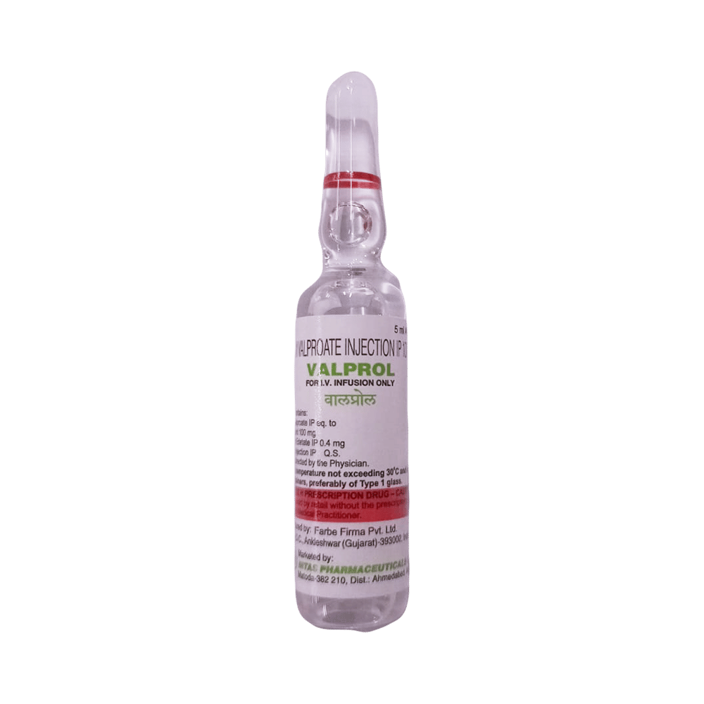 VALprol 100mg/ml Injection is an antiepileptic medication. It controls seizures or fits by decreasing the abnormal and excessive activity of the nerve cells in the brain.