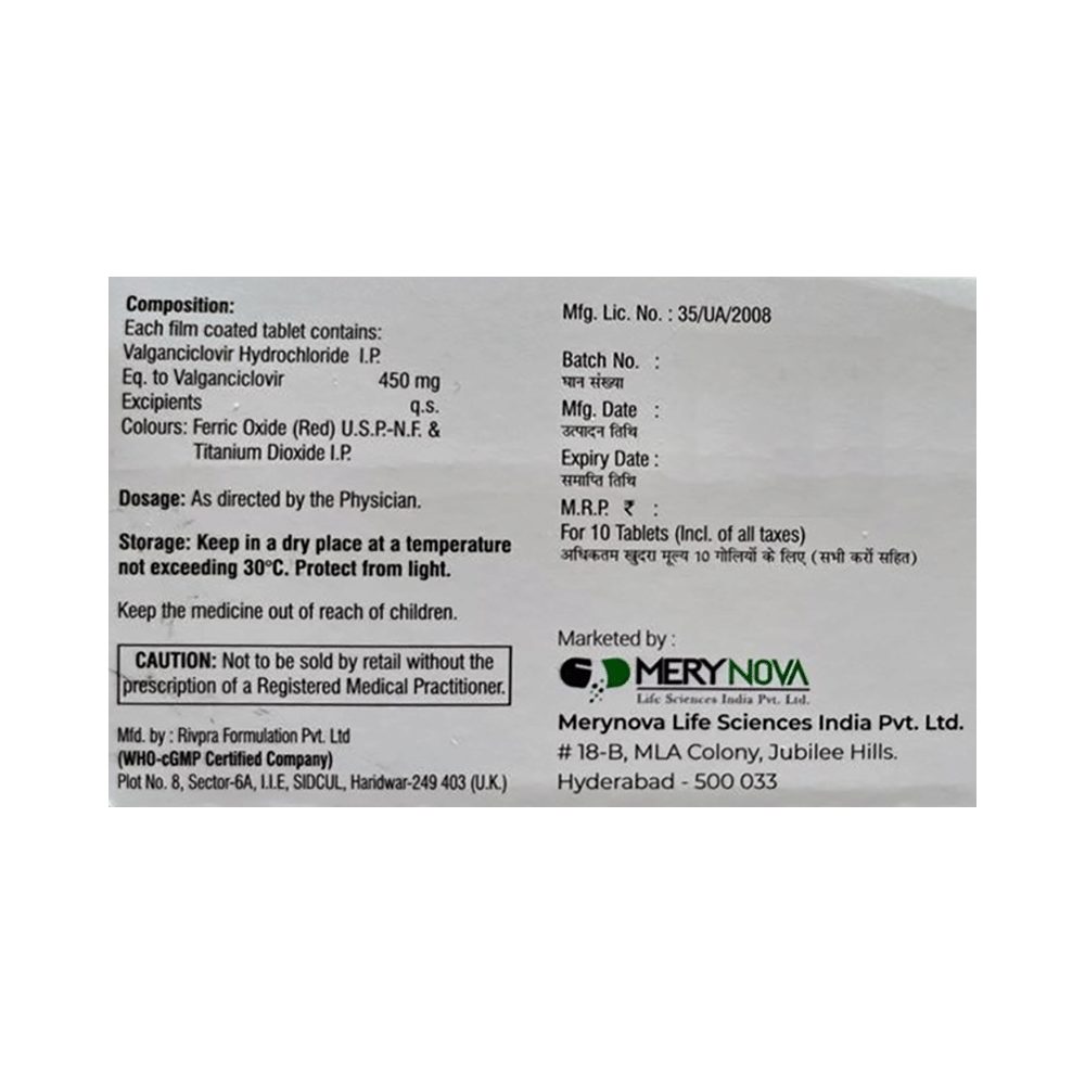 Salt Composition: Valganciclovir (450mg)
