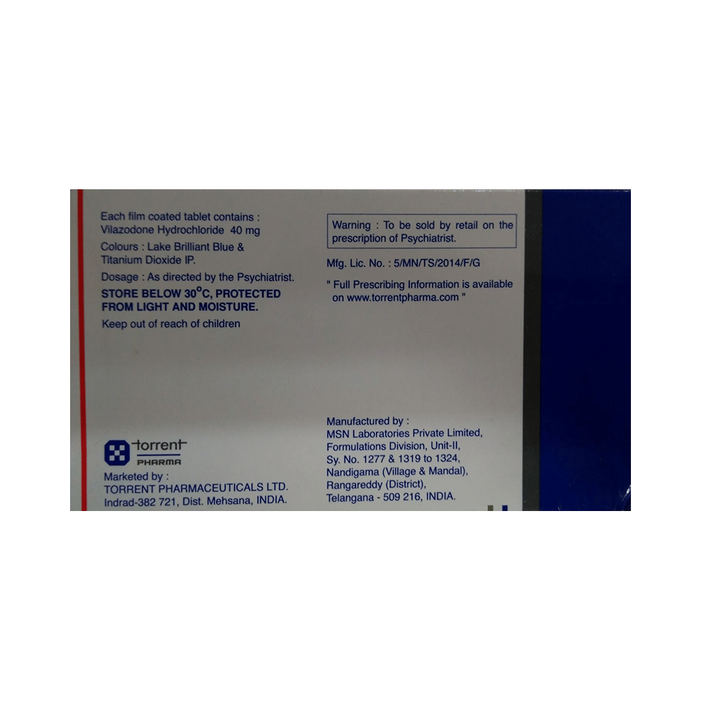 Salt Composition: Vilazodone (40mg)