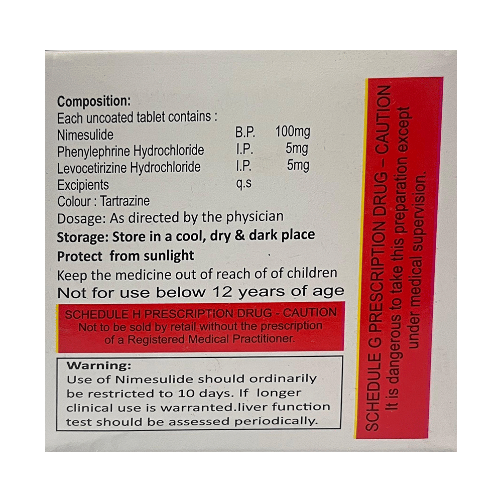 Salt Composition: Nimesulide (100mg) + Phenylephrine (5mg) + Levocetirizine (5mg)