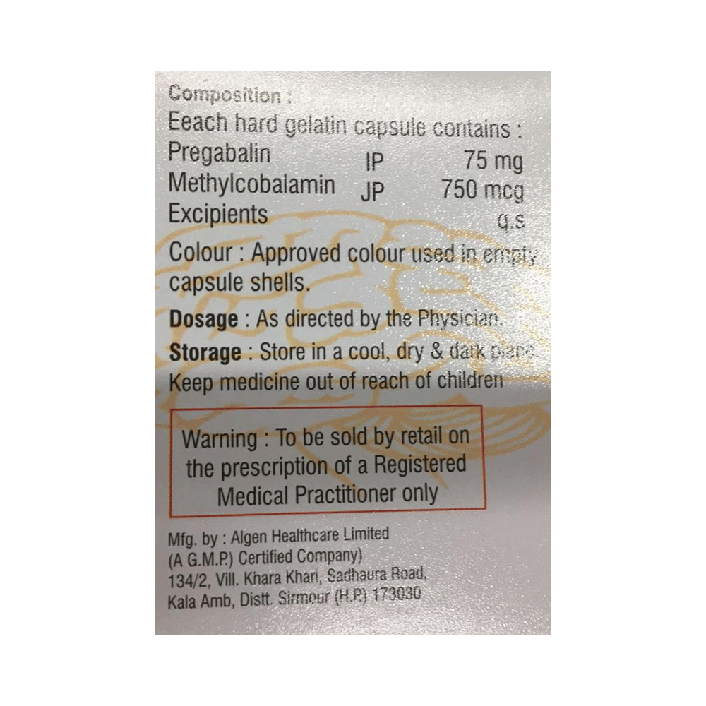 Salt Composition: Methylcobalamin (750mcg) + Pregabalin (75mg)
