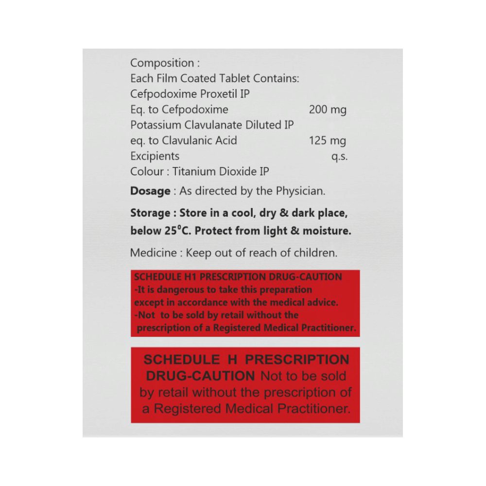 Salt Composition: Cefpodoxime Proxetil (200mg) + Clavulanic Acid (125mg)