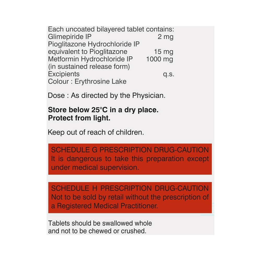 Salt Composition: Glimepiride (2mg) + Metformin (1000mg) + Pioglitazone (15mg)