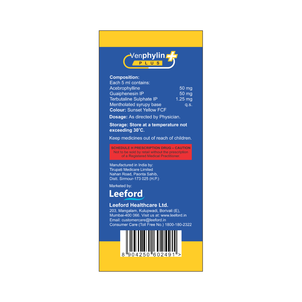Venphylin Plus Syrup is a combination of three medicines: Terbutaline, Acebrophylline and Guaifenesin, which relieves cough with mucus.