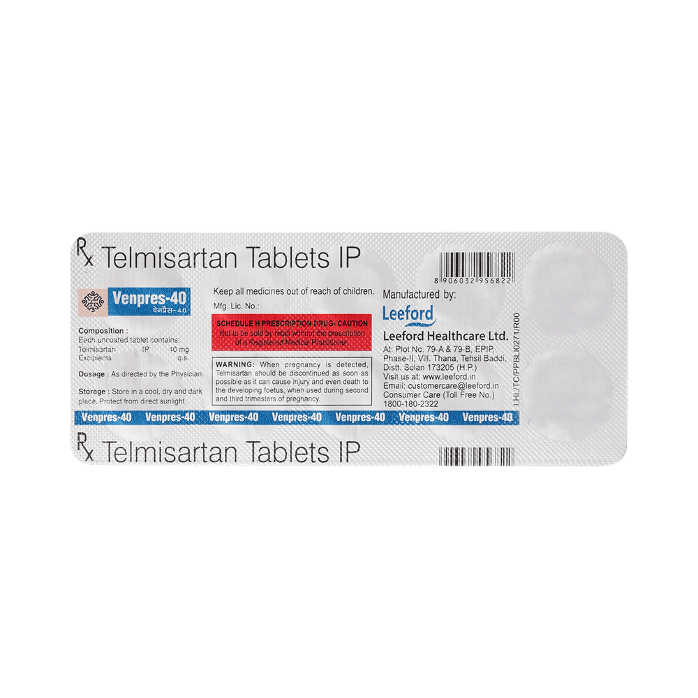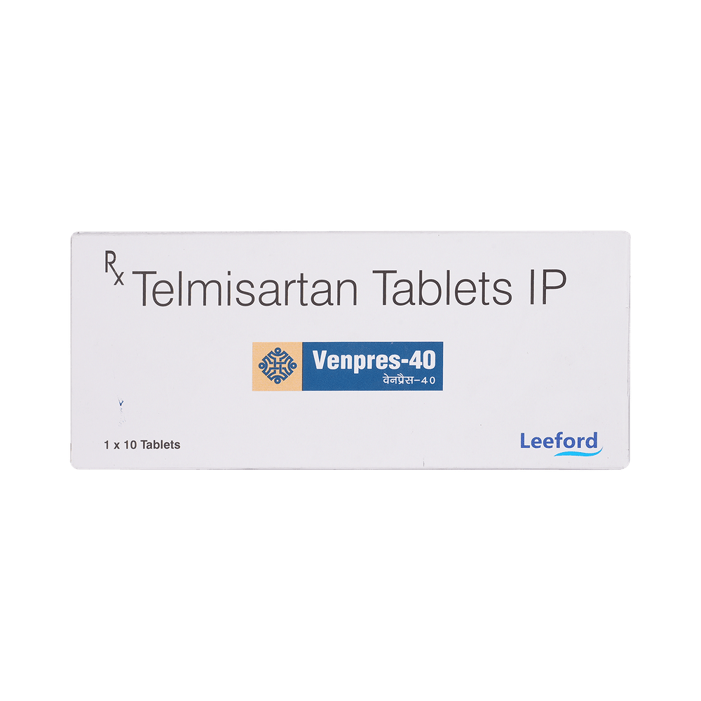 Venpres 40mg Tablet is an angiotensin receptor blocker (ARB). It relaxes blood vessels by blocking the action of a chemical that usually makes blood vessels tighter. This lowers the blood pressure, allowing the blood to flow more smoothly to different organs and the heart to pump more efficiently.