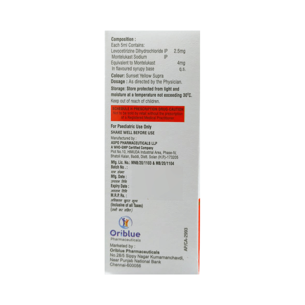 Salt Composition: Levocetirizine (2.5mg/5ml) + Montelukast (4mg/5ml)
