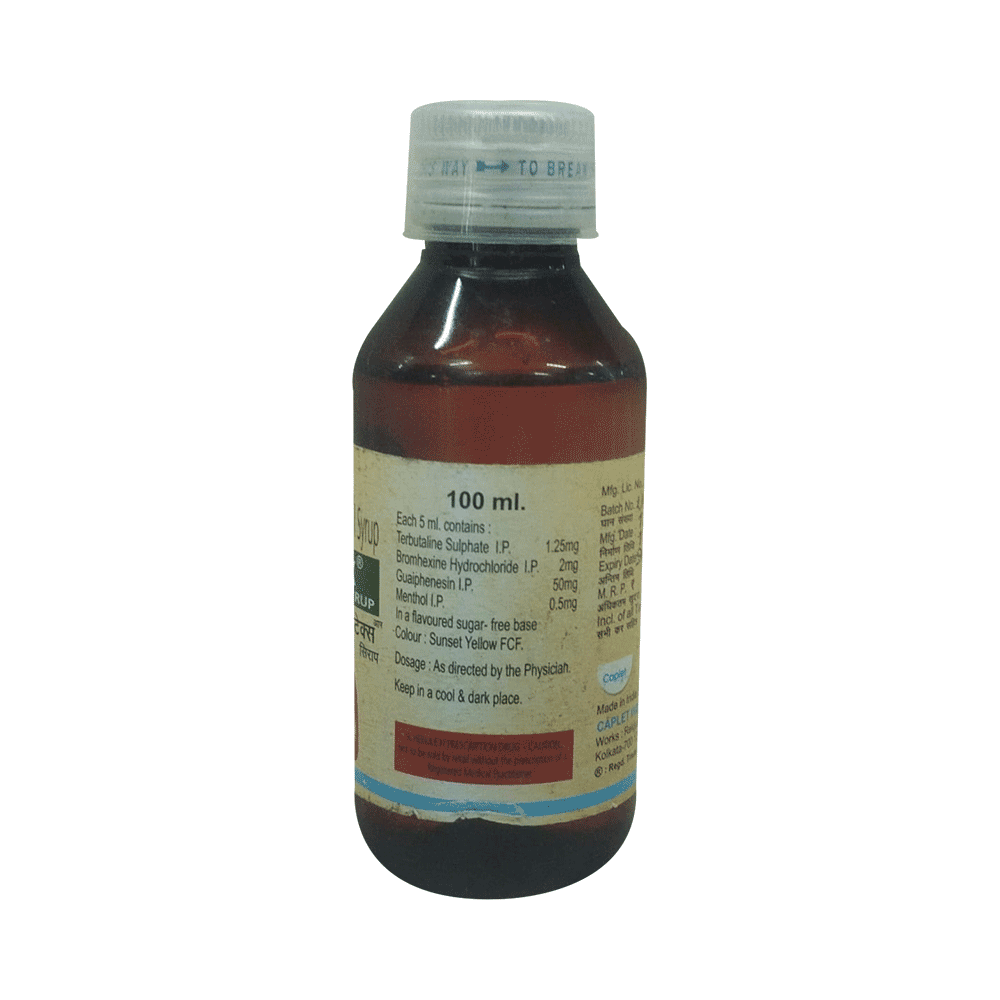 Salt Composition: Bromhexine (2mg) + Guaifenesin (50mg) + Menthol (0.5mg) + Terbutaline (1.25mg)