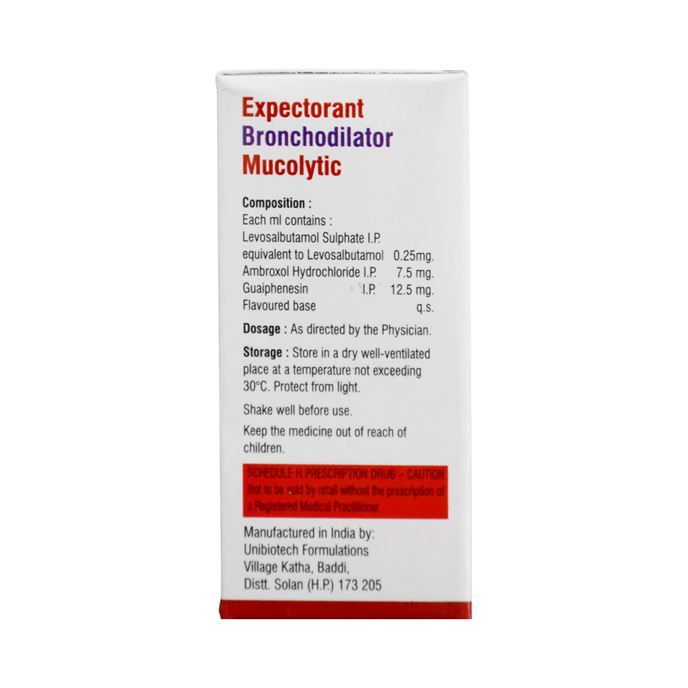 Salt Composition: Ambroxol (7.5mg/ml) + Levosalbutamol (0.25mg/ml) + Guaifenesin (12.5mg/ml)