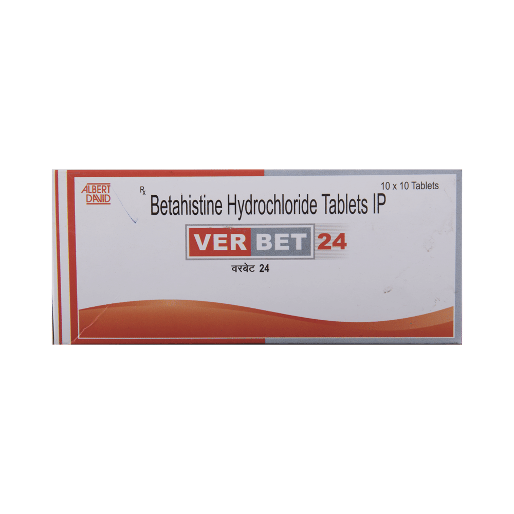 You have been prescribed Verbet 24 Tablet to relieve vertigo (dizziness), hearing problems and tinnitus (noise in the ear) associated with Ménière's disease.