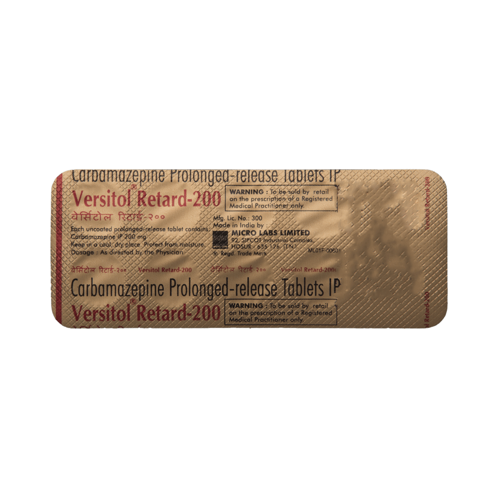 Versitol Retard 200 Tablet PR is an antiepileptic medication. It controls seizures or fits by decreasing the abnormal and excessive activity of the nerve cells in the brain.