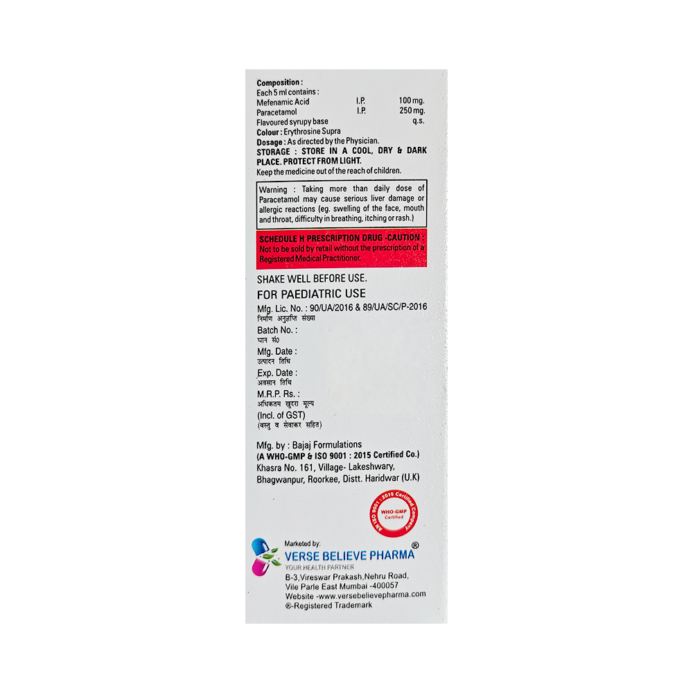 Salt Composition: Mefenamic Acid (100mg/5ml) + Paracetamol (250mg/5ml)