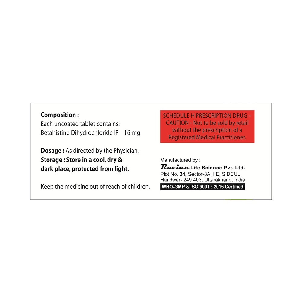 Vertibest 16 Tablet is used to prevent and treat a disorder of the inner ear known as Ménière’s disease. The symptoms include dizziness (vertigo), ringing in the ears (tinnitus), and loss of hearing, probably caused by fluid in the ear. This medicine helps relieve the symptoms by reducing the amount of fluid. Vertibest 16 Tablet should be swallowed whole with water and taken at the same time(s) each day to get the most benefit. Your doctor will decide what is the correct dose to relieve your symptoms and how often you need to take it. You may need to take this medicine for several months and you should take it for as long as prescribed by your doctor, even if you start feeling better. The most common side effects include headache, feeling sick, and indigestion (dyspepsia). You may also get stomach pain and bloating. Taking the medicine with food can help reduce stomach problems. Before taking this medicine, you should talk to your doctor if you have a stomach ulcer, asthma, or high or low blood pressure. You must also tell him/her what other medicines you are taking, to make sure you are safe. Also speak to your doctor if you are pregnant, trying to become pregnant, or breastfeeding.