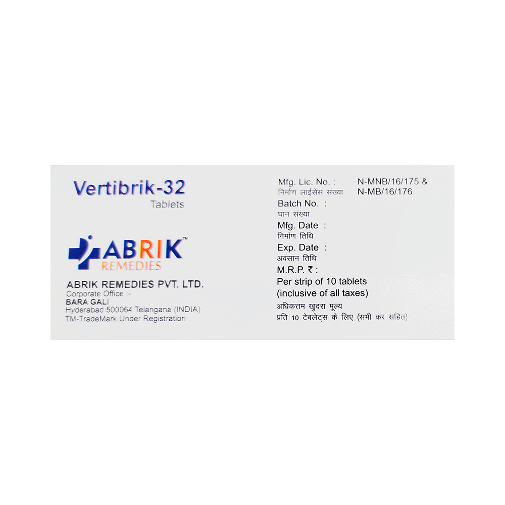 Take this medicine in the dose and duration as advised by your doctor. Swallow it as a whole. Do not chew, crush or break it. Vertibrik 32 Tablet SR may be taken with or without food, but it is better to take it at a fixed time.