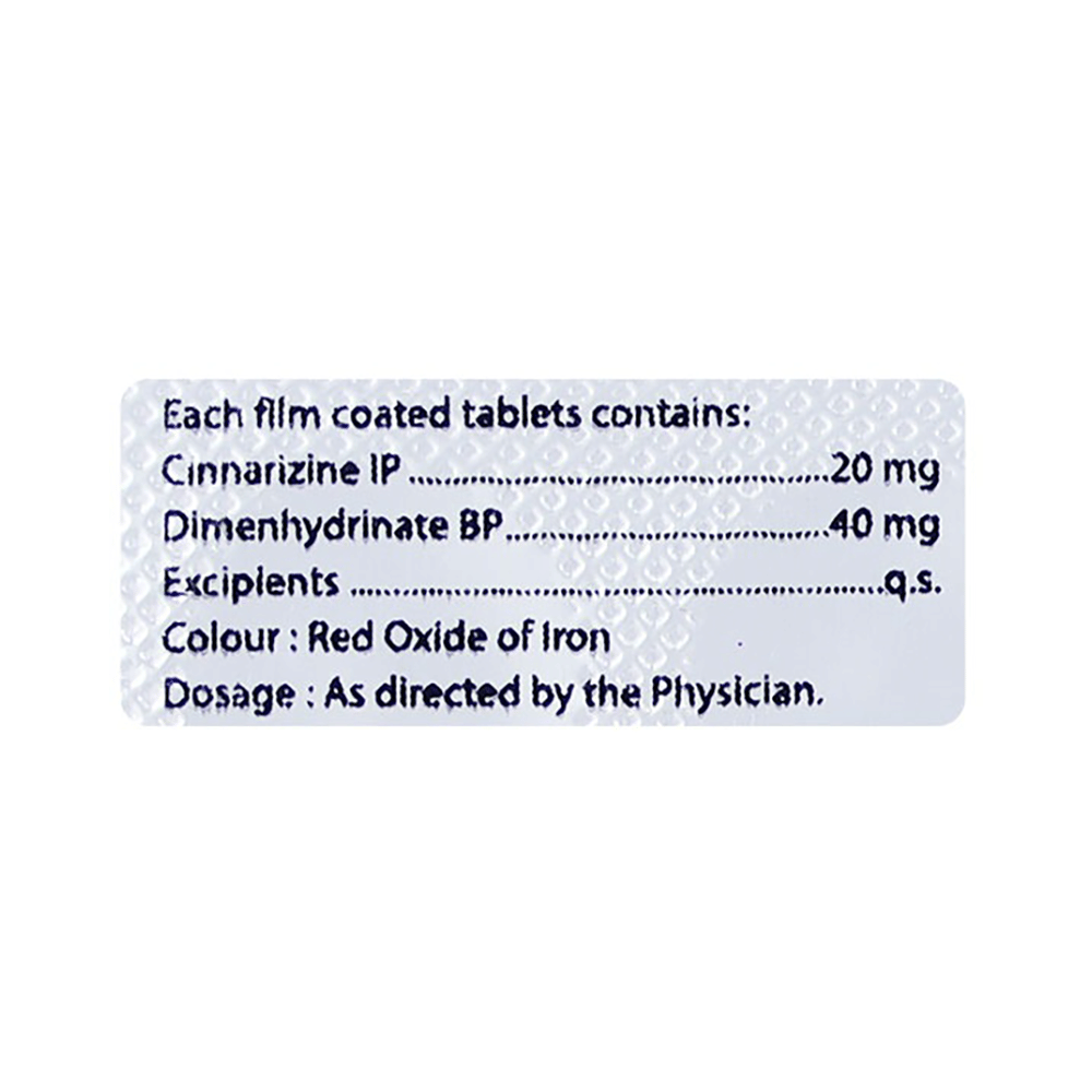 Salt Composition: Cinnarizine (20mg) + Dimenhydrinate (40mg)