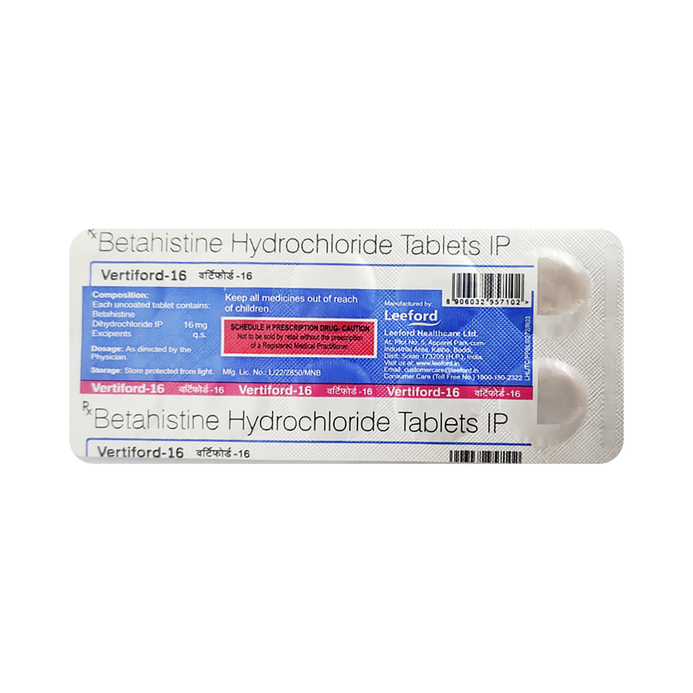 You have been prescribed Vertiford 16 Tablet to relieve vertigo (dizziness), hearing problems and tinnitus (noise in the ear) associated with Ménière's disease.