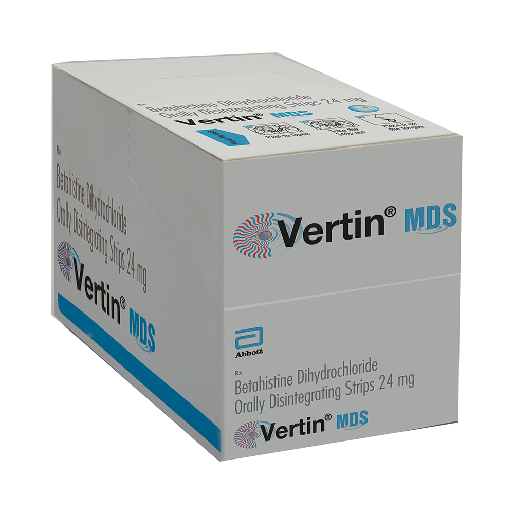 Vertin MDS Orally Disintegrating Strip is used to prevent and treat a disorder of the inner ear known as Ménière’s disease. The symptoms include dizziness (vertigo), ringing in the ears (tinnitus), and loss of hearing, probably caused by fluid in the ear. This medicine helps relieve the symptoms by reducing the amount of fluid. Vertin MDS Orally Disintegrating Strip should be swallowed whole with water and taken at the same time(s) each day to get the most benefit. Your doctor will decide what is the correct dose to relieve your symptoms and how often you need to take it. You may need to take this medicine for several months and you should take it for as long as prescribed by your doctor, even if you start feeling better. The most common side effects include headache, feeling sick, and indigestion (dyspepsia). You may also get stomach pain and bloating. Taking the medicine with food can help reduce stomach problems. Before taking this medicine, you should talk to your doctor if you have a stomach ulcer, asthma, or high or low blood pressure. You must also tell him/her what other medicines you are taking, to make sure you are safe. Also speak to your doctor if you are pregnant, trying to become pregnant, or breastfeeding.