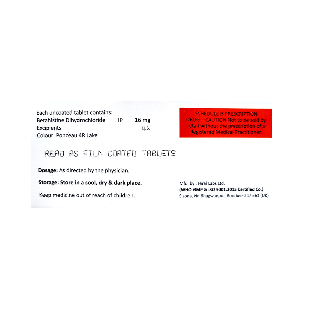 Salt Composition: Betahistine (16mg)