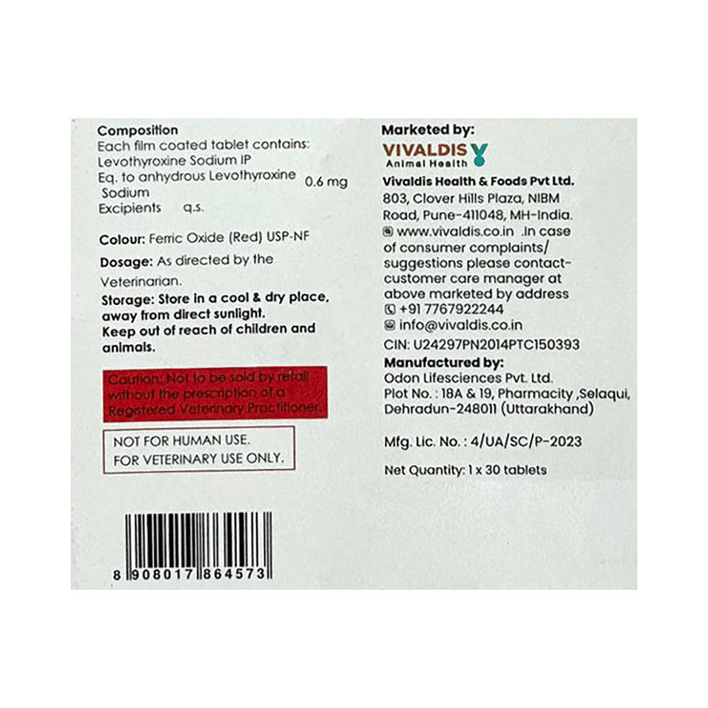 Explore the benefits of Vet Thyro 0.6 Tablet. Use as directed by your physician or as described in the instructions.