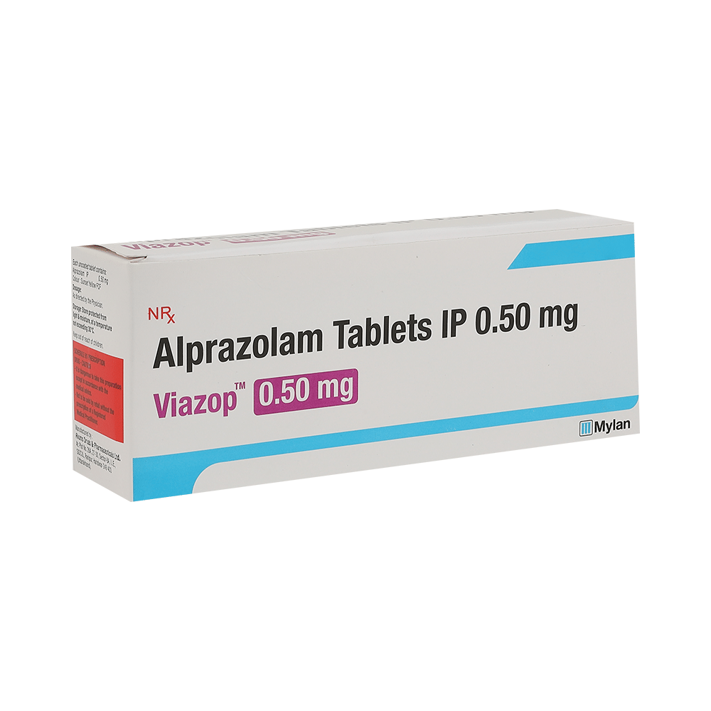 Viazop 0.5mg Tablet is a prescription medicine used to treat anxiety and panic disorders. It alters brain activity, calms it, and provides relief from anxiety and panic attacks by relaxing the nerves. Viazop 0.5mg Tablet may be taken with or without food. However, it is advised to take it at the same time each day, as this helps to maintain a consistent level of medicine in the body. Take this medicine in the dose and duration as advised by your doctor, as it has a high potential for habit-forming. Finish the full course of treatment even if you feel better. This medication must not be stopped suddenly without talking to the doctor.The most common side effects of this medicine are problems with coordination, low blood pressure (hypotension), and changes in sex drive. It may cause dizziness and sleepiness, so do not drive or do anything that requires mental focus until you know how this medicine affects you.Viazop 0.5mg Tablet should be avoided in individuals with a history of substance abuse or dependence, as it can be habit-forming. Do not take Viazop 0.5mg Tablet with alcohol or other sedatives, as it can cause excessive drowsiness and breathing difficulties. Pregnant and breastfeeding women should consult a doctor before use, as it may harm the baby. Avoid driving or operating heavy machinery, as Viazop 0.5mg Tablet can cause drowsiness and dizziness.