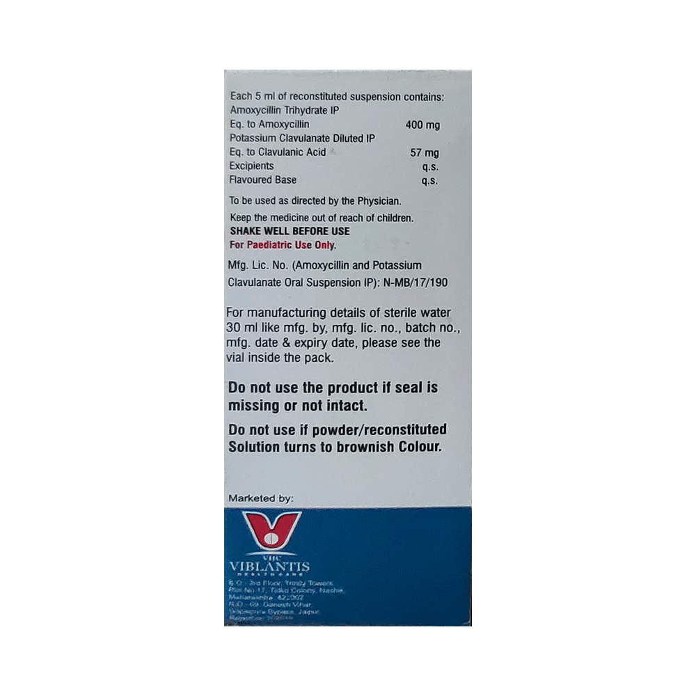 Salt Composition: Amoxycillin (400mg/5ml) + Clavulanic Acid (57mg/5ml)