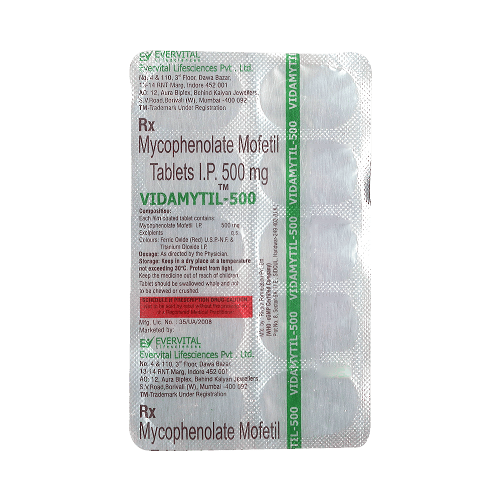 Your doctor has prescribed Vidamytil 500 Tablet to stop your body from rejecting a transplanted organ (e.g. kidney, heart or liver).