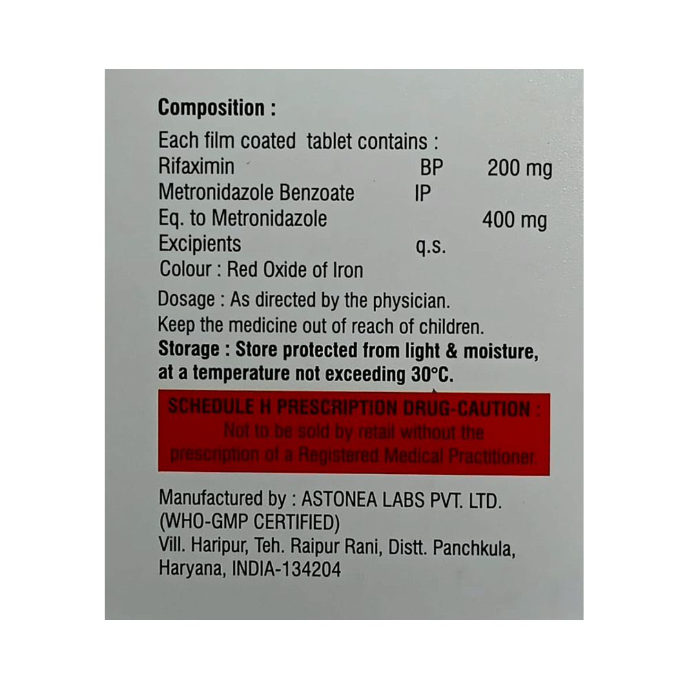 Salt Composition: Rifaximin (200mg) + Metronidazole (400mg)
