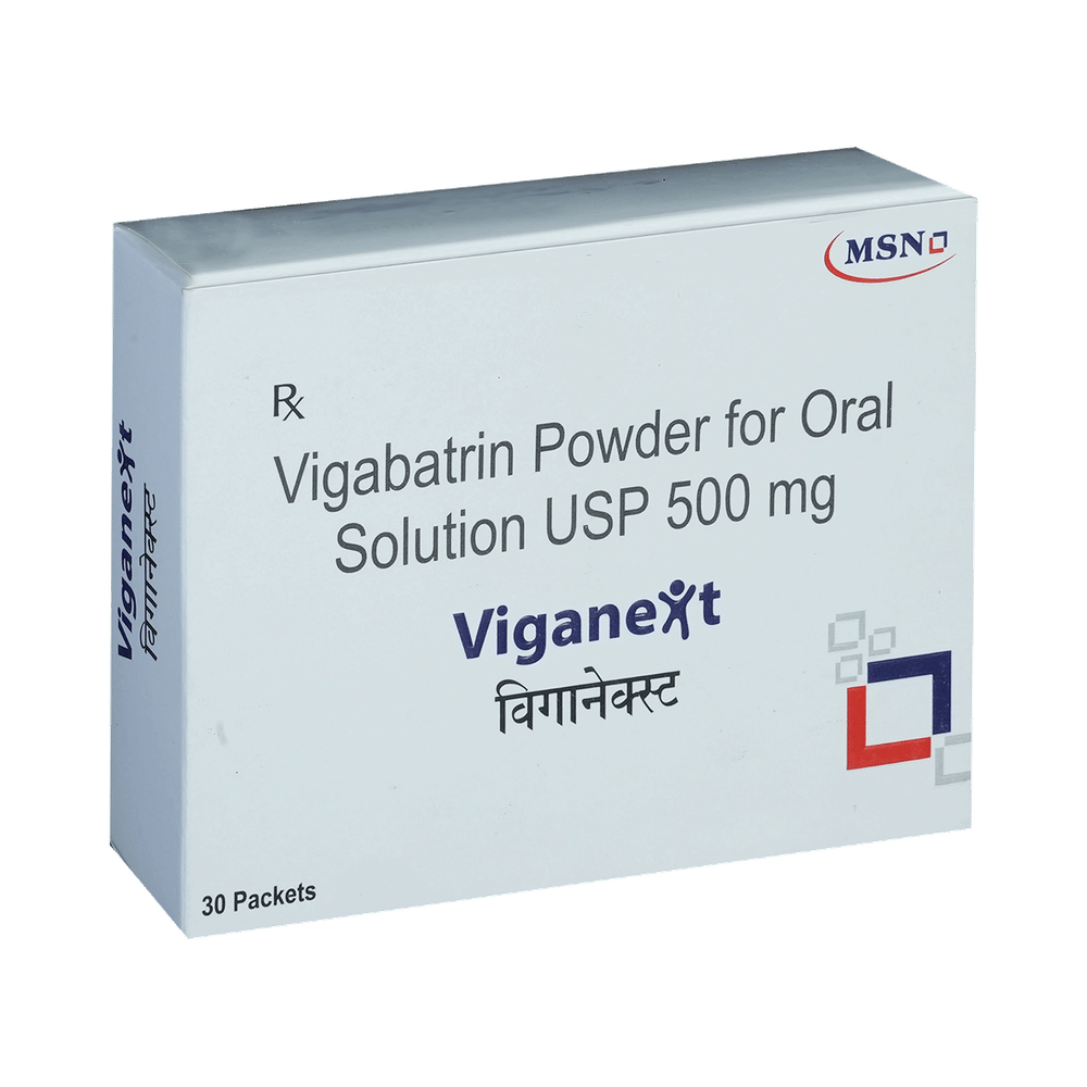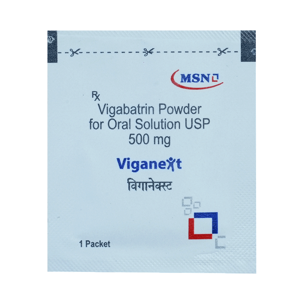 Viganext Powder for Oral Solution belongs to a class of medicines known as antiepileptic drugs (AED). It is a prescription medicine used to treat epilepsy (seizures) and infantile spasms. It may be used alone or in combination with other medicines. Viganext Powder for Oral Solution may be taken with or without food. However, take it at the same time each day as this helps to maintain a consistent level of medicine in the body. If you have missed a dose, take it as soon as you remember it and finish the full course of treatment even if you feel better. Stopping the medication suddenly without talking to your doctor may cause a worsening of your condition.Some common side effects of this medicine include blurred vision, joint pain, tremors, tiredness, upper respiratory tract infection, aggression, double vision, nystagmus (involuntary eye movement) and altered walking. It may lead to loss of vision also, therefore, it is better to get the eyesight checked before you start the treatment and regularly thereafter. It may also cause dizziness and sleepiness, so do not drive or do anything that requires mental focus until you know how this medicine affects you. Weight gain may occur in some cases but it can be controlled by having a healthy balanced diet and doing exercise.