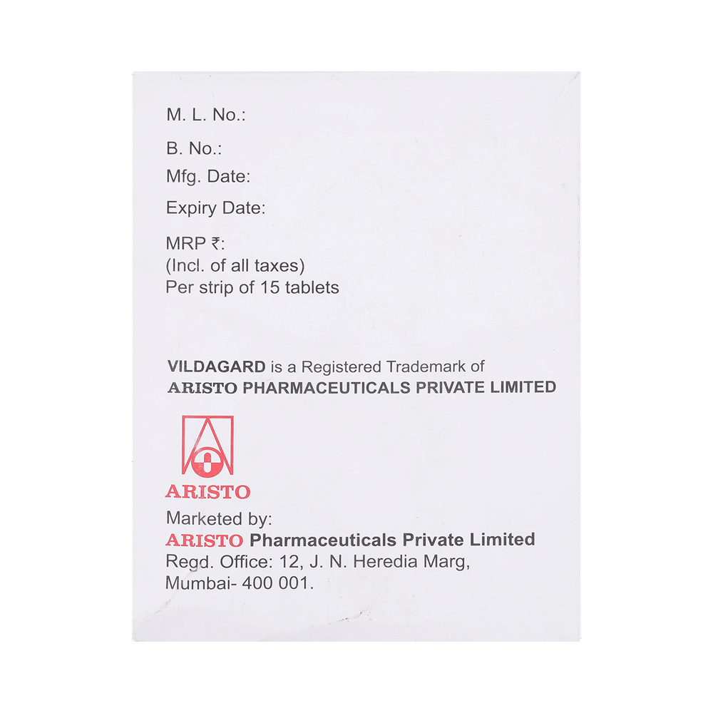 Vildagard M 1000mg/50mg Tablet is a combination of two medicines that control high blood sugar levels in people with type 2 diabetes mellitus. This helps prevent serious complications of diabetes, such as kidney damage and blindness, and may also reduce your chances of having a heart attack or stroke. Vildagard M 1000mg/50mg Tablet can be prescribed alone or together with other diabetes medications. All diabetes medicines work best when used along with a healthy diet and regular exercise. The dose you are given will depend on your condition, blood sugar levels, and what other medicines you are taking. Taking it with meals helps reduce the chances of developing an upset stomach. You should take it regularly, at the same time each day, to get the most benefit, and you should not stop unless your doctor recommends it. It controls your blood sugar levels and helps prevent serious complications in the future. It is important to stay on the diet and exercise program recommended by your doctor while taking this medicine. Your lifestyle plays a big part in controlling diabetes.The most common side effects of taking this medicine include nausea, headache, and gastroesophageal reflux disease. Low blood sugar level (hypoglycemia) is also a possible side effect if you are also taking other diabetes medicines like insulin or sulfonylurea, so you need to know how to recognize and deal with it.This medicine is not suitable for everyone. Before taking it, you should let your doctor know if you have ever had kidney, liver, or heart disease; problems with your pancreas; or if you drink a lot of alcohol. Pregnant or breastfeeding women should also consult their doctor before taking this medicine. Some other medicines can affect this one, so tell your doctor about all the medicines you are taking to make sure Vildagard M 1000mg/50mg Tablet is safe. You should try to avoid drinking alcohol, as it lowers blood glucose. Your doctor will check your kidney function and blood sugar levels before and during treatment.
