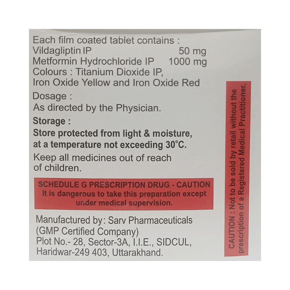 Salt Composition: Metformin (1000mg) + Vildagliptin (50mg)