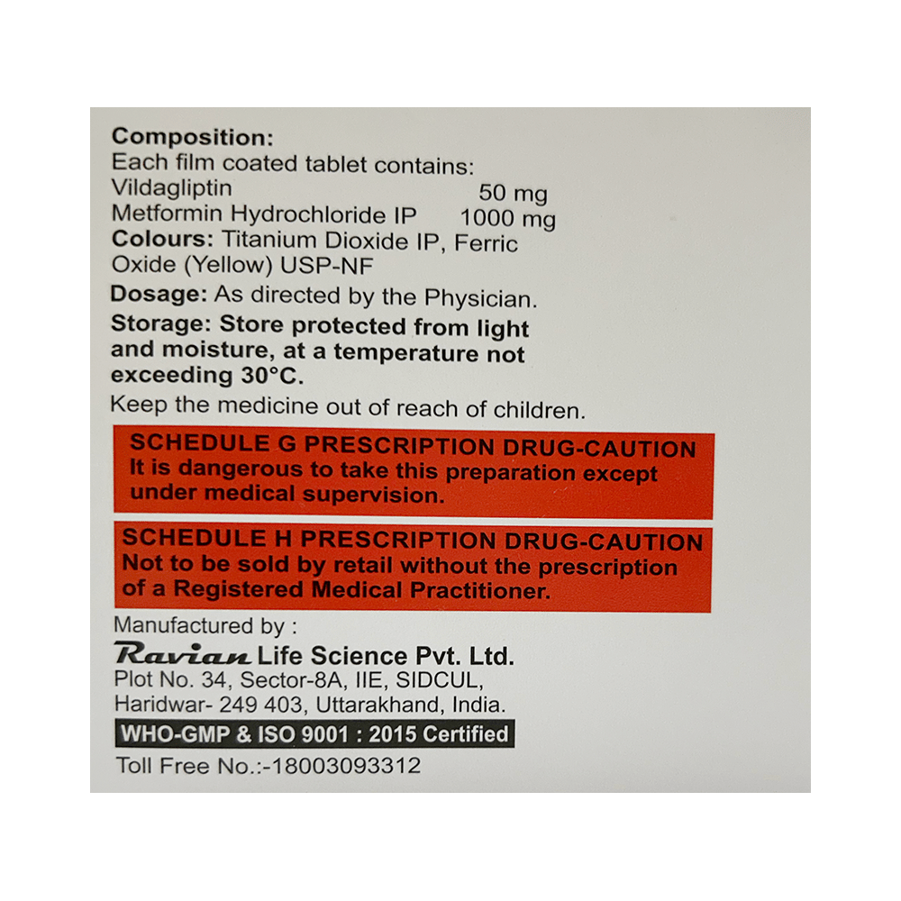 Salt Composition: Metformin (1000mg) + Vildagliptin (50mg)