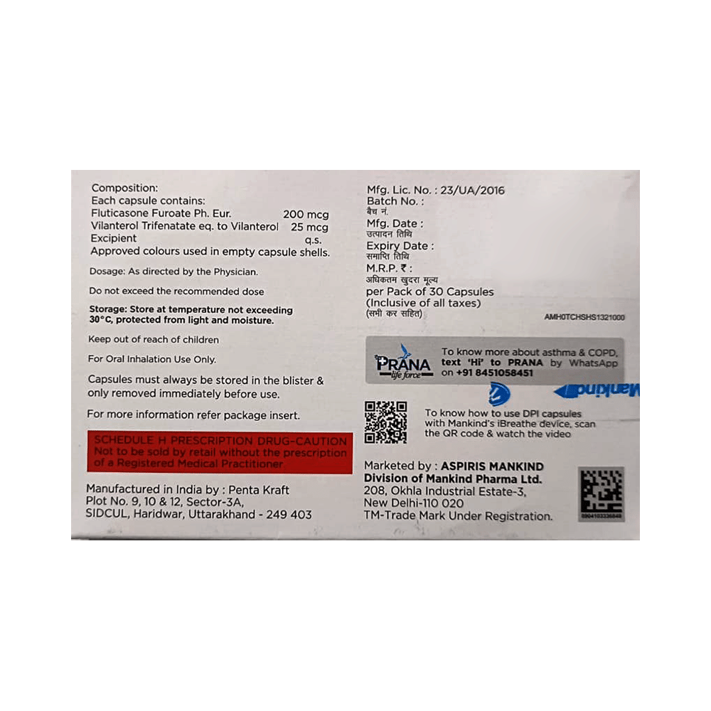 Salt Composition: Fluticasone Furoate (200mcg) + Vilanterol (25mcg)