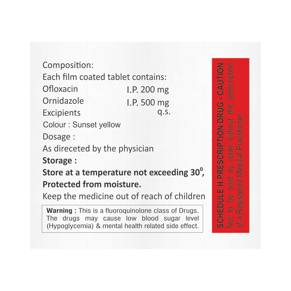 Salt Composition: Ofloxacin (200mg) + Ornidazole (500mg)