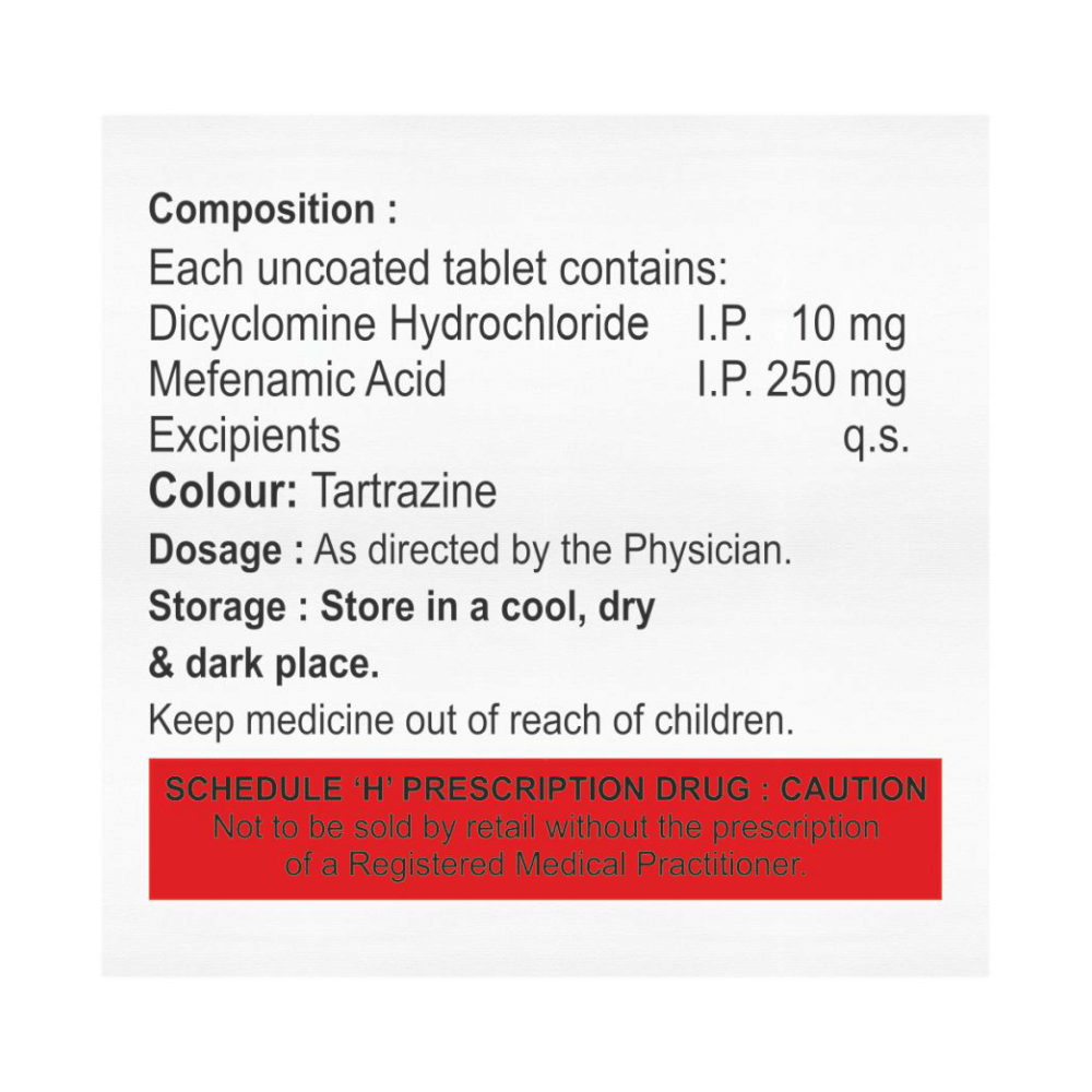 Salt Composition: Dicyclomine (10mg) + Mefenamic Acid (250mg)