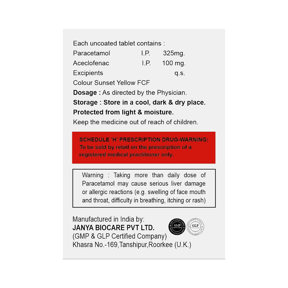 Salt Composition: Aceclofenac (100mg) + Paracetamol (325mg)