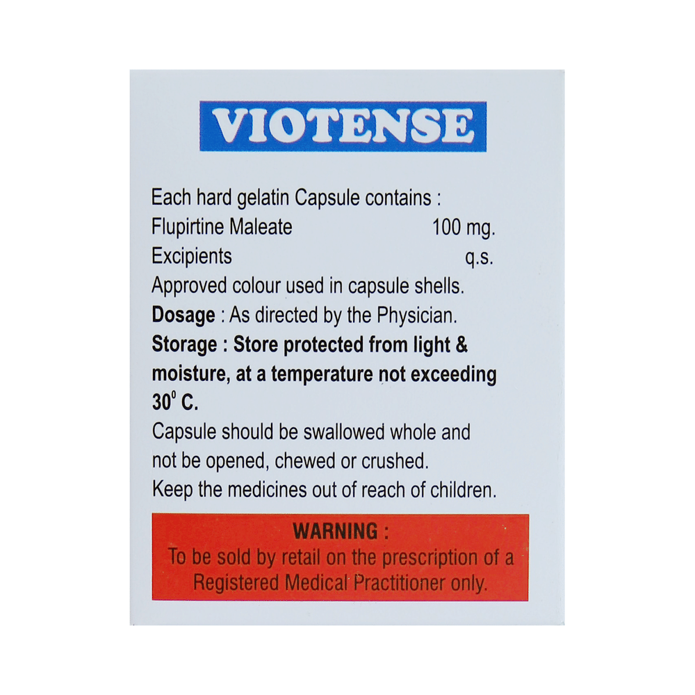 In Pain reliefViotense Capsule helps relieve moderate to severe pain in conditions that affect joints and muscles. It works by blocking chemical messengers in the brain that tell us we have pain. It can help relieve pain in conditions like muscle pain, headache, nerve pain, postoperative pain, and menstrual cramps. The dose and duration will be decided by the doctor depending on the condition you are being treated for. This medicine helps one go about their daily activities more easily and have a better, more active, quality of life.