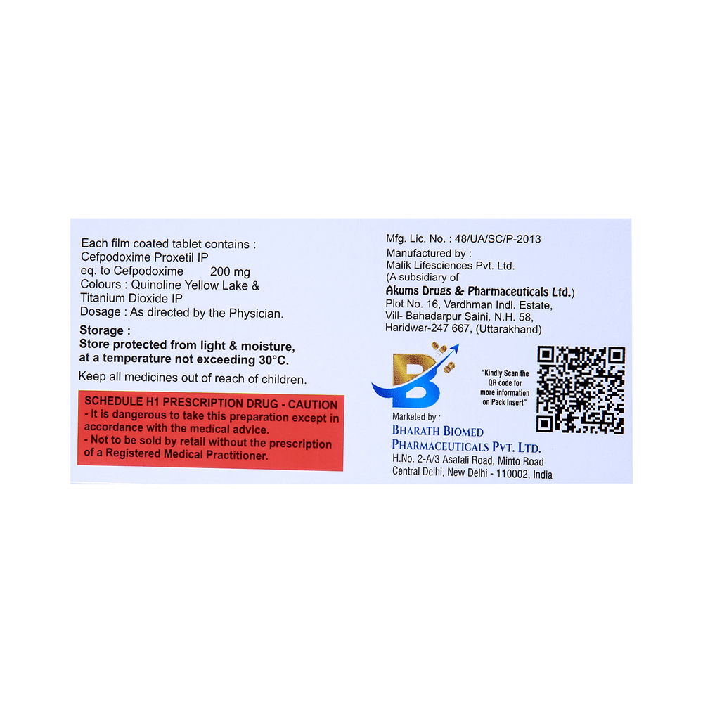 Salt Composition: Cefpodoxime Proxetil (200mg)
